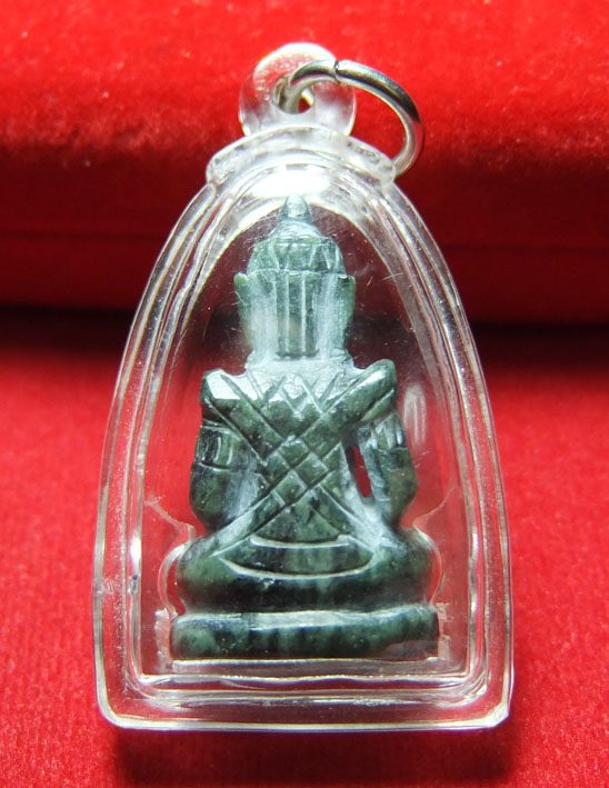 3392.พระแก้วมรกต (ทรงเครื่อง) เนื้อหยก สูงประมาณ 3.5 cm. ไม่ทราบที่สร้าง เลี่ยมพร้อมบูชา